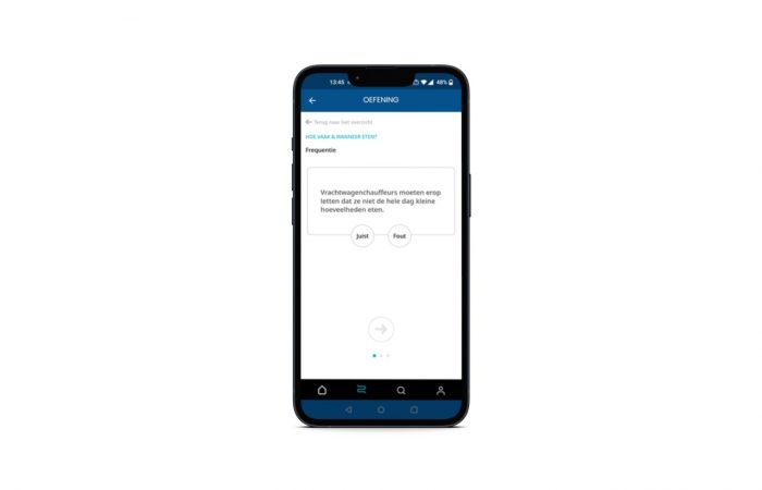 Daarnaast is de Perfect Driver app ook een opleidingstool. Je kan er terecht voor korte lesmodules over een brede waaier aan onderwerpen. Elke ‘microlearning’ module gaat over een specifiek thema, van gezondheid over EHBO tot omgaan met risico’s op de weg.