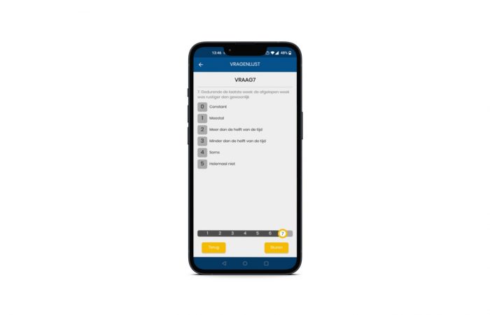 Er zijn momenteel vragenlijsten beschikbaar in de app die focussen op